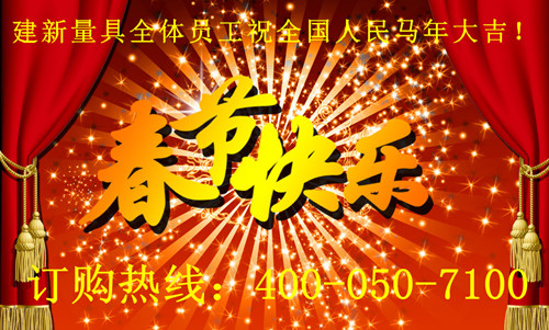 春節(jié)即將來臨,在此建新量具總經(jīng)理劉超攜公司全體員工送上我們誠摯的問候和衷心的祝福,預(yù)祝廣大客戶新春快樂,生意興隆,財源滾滾馬年大吉!祝愿各界新老用戶,友人——全家團(tuán)圓,幸福安康。
